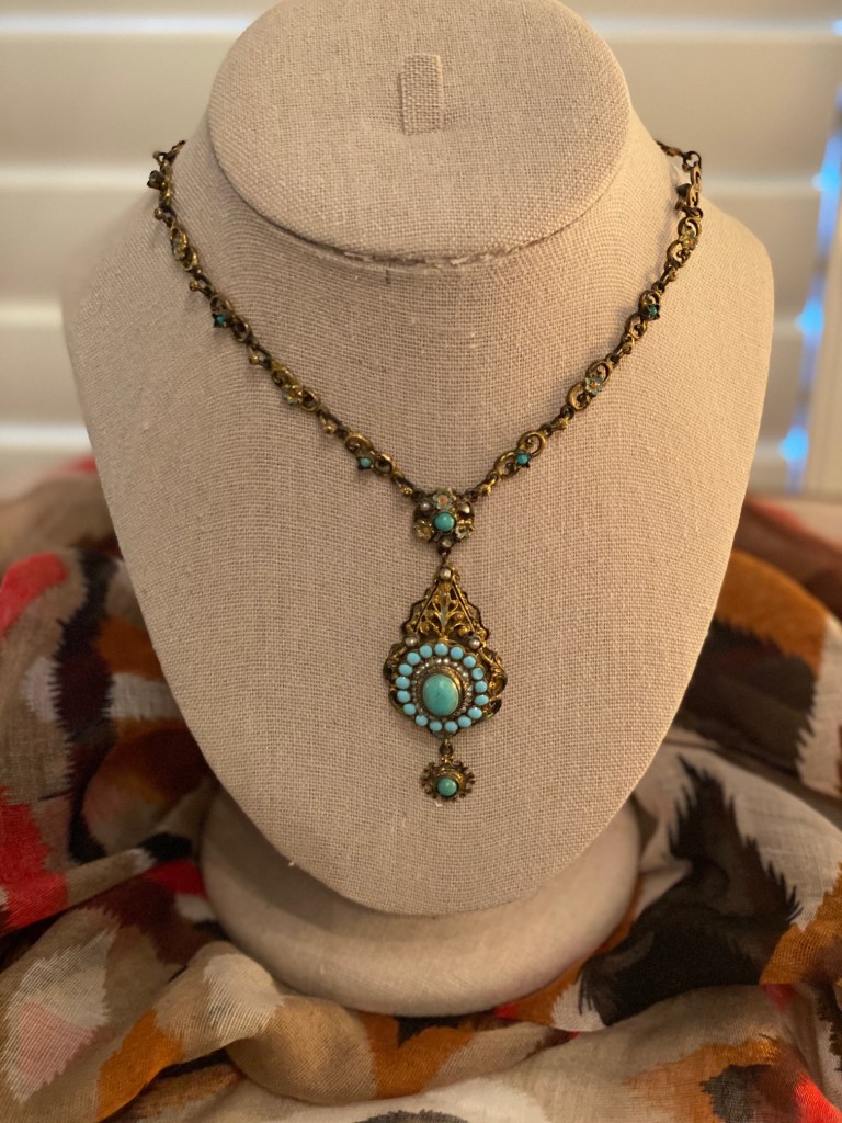 On my parents’ first trip to Europe as a couple in the 1970s, my dad bought my mom a beautiful, ornate, antique gold and turquoise pendant. Many years later, she gifted it to me in its original silk-lined box. I stored it in a drawer in the closet of my apartment and rarely looked at it. One day, I remembered I had it and decided to wear it, but couldn’t find it anywhere. It wasn’t in the drawer where I last put it, and it wasn’t with my other necklaces. Frustrated, I abandoned the idea and picked something else. Hours later, I returned to my closet and the necklace was lying.in.the.middle.of.the.floor.in.plain.sight. I have chills even as I type this. To this day, I still can’t touch this necklace without getting a little spooked…