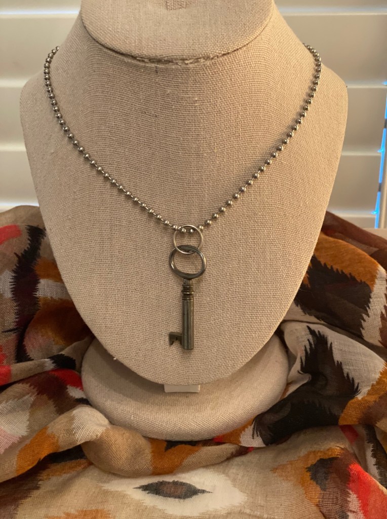 My husband, Andy, and I bought our home six years ago. It was built in 1891 but has been through numerous owners and several major renovations since then. The first thing we did upon closing was rip out the existing kitchen. One day, we came to the house to inspect the progress of the demolition. As I was studying the future cabinet layout, my eye caught a glimpse of a small metal object wedged in the baseboard. It was an old skeleton key. It didn’t fit any of the existing doors in the house. For all we know, the lock it was meant for had been removed a hundred years earlier. I put the key on a ball chain to wear as a necklace, because to me it symbolizes the long and rich history of our home, and feels like an homage to all the owners who came before us. I don’t understand how it stayed wedged in that baseboard through so many renovations, unless it was meant to be mine.