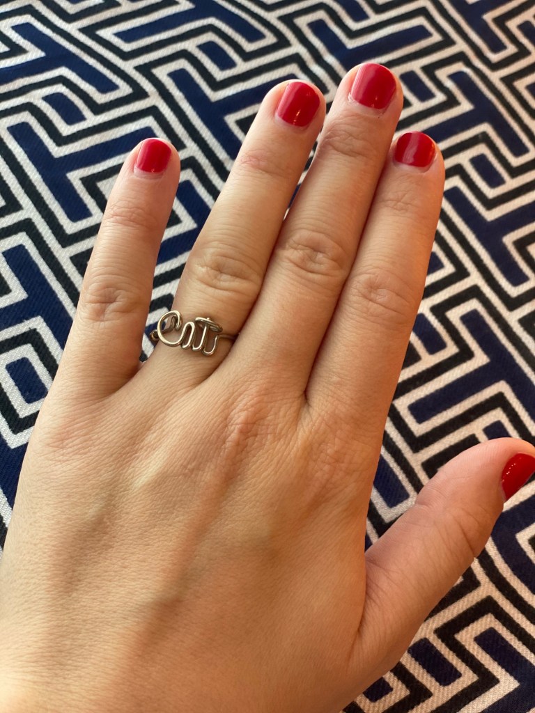 This ring dates back to my elementary school days. I vaguely remember buying it at a kiosk on Navy Pier where they twisted wire to spell your name: